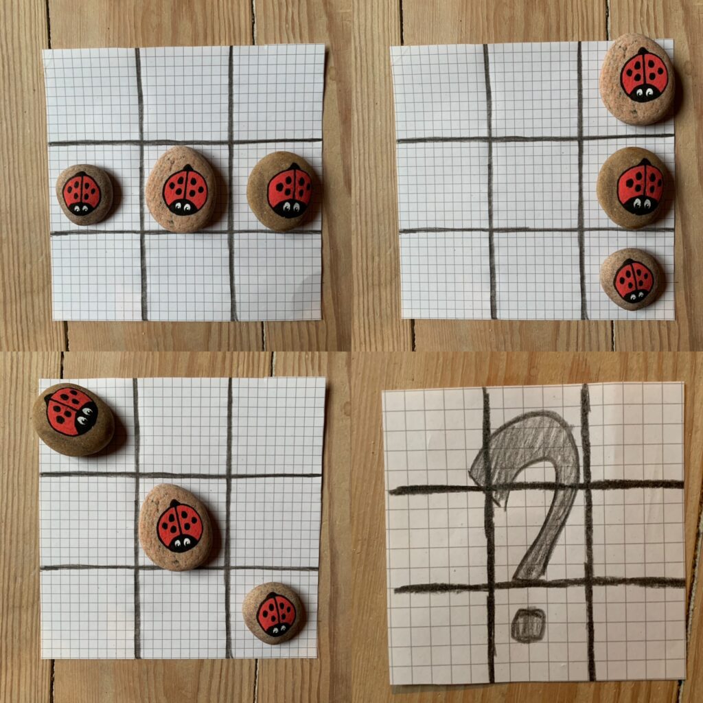 - Spil 3 på stribe. Kast to 10-sidet terninger. Gang øjnene sammen og placer en centicube på facit. Den der først får 3 på stribe vinder.