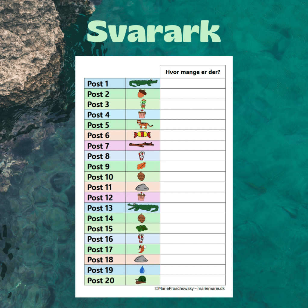 Sæt et stopur på tavlen, så de elever, der bliver færdig før de 7 minutter kan skrive den tid de har brugt ned på arket.