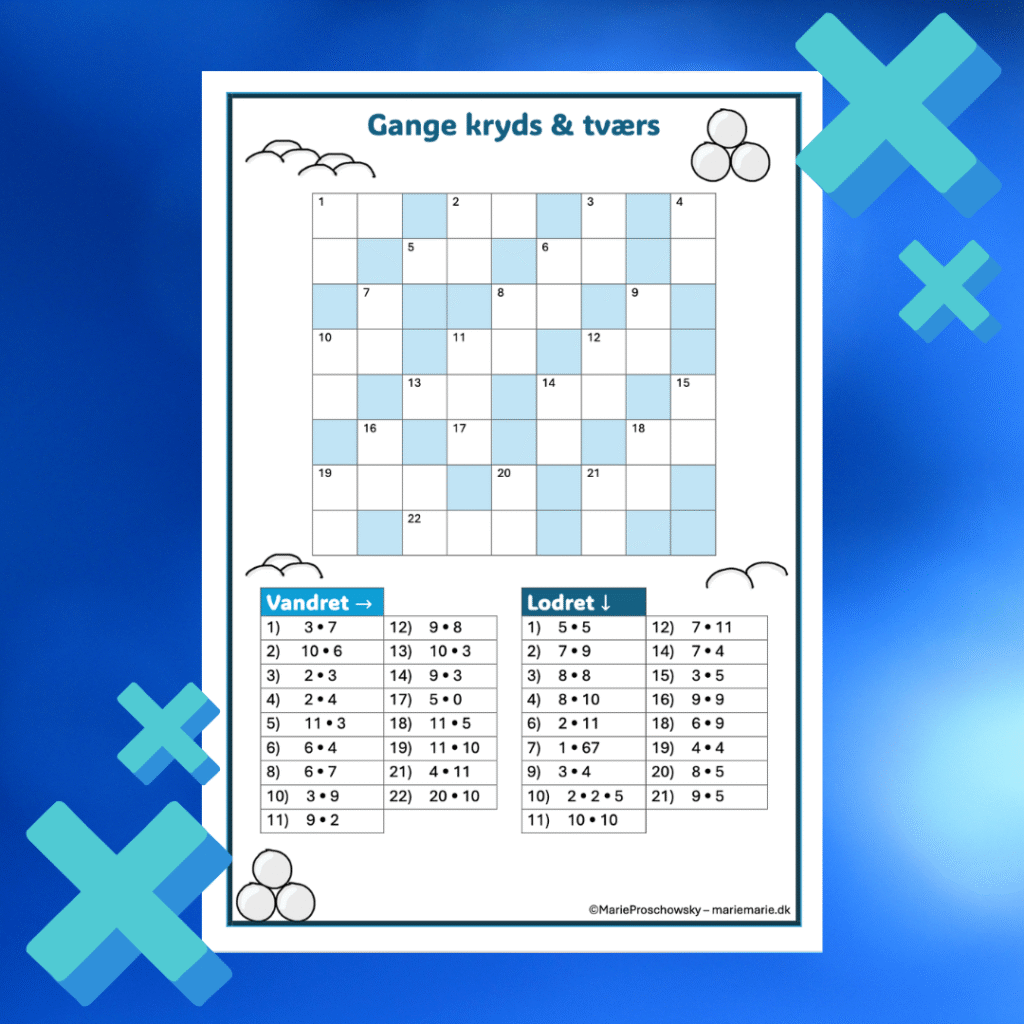 Min yngste dreng og jeg har sammen skabt dette ark med gange kryds og tværs. Tobias går selv i 3. klasse, og synes det kunne være sjovt at skabe noget til mine elever – og indrømmet, det var også hyggeligt at gøre sammen.
